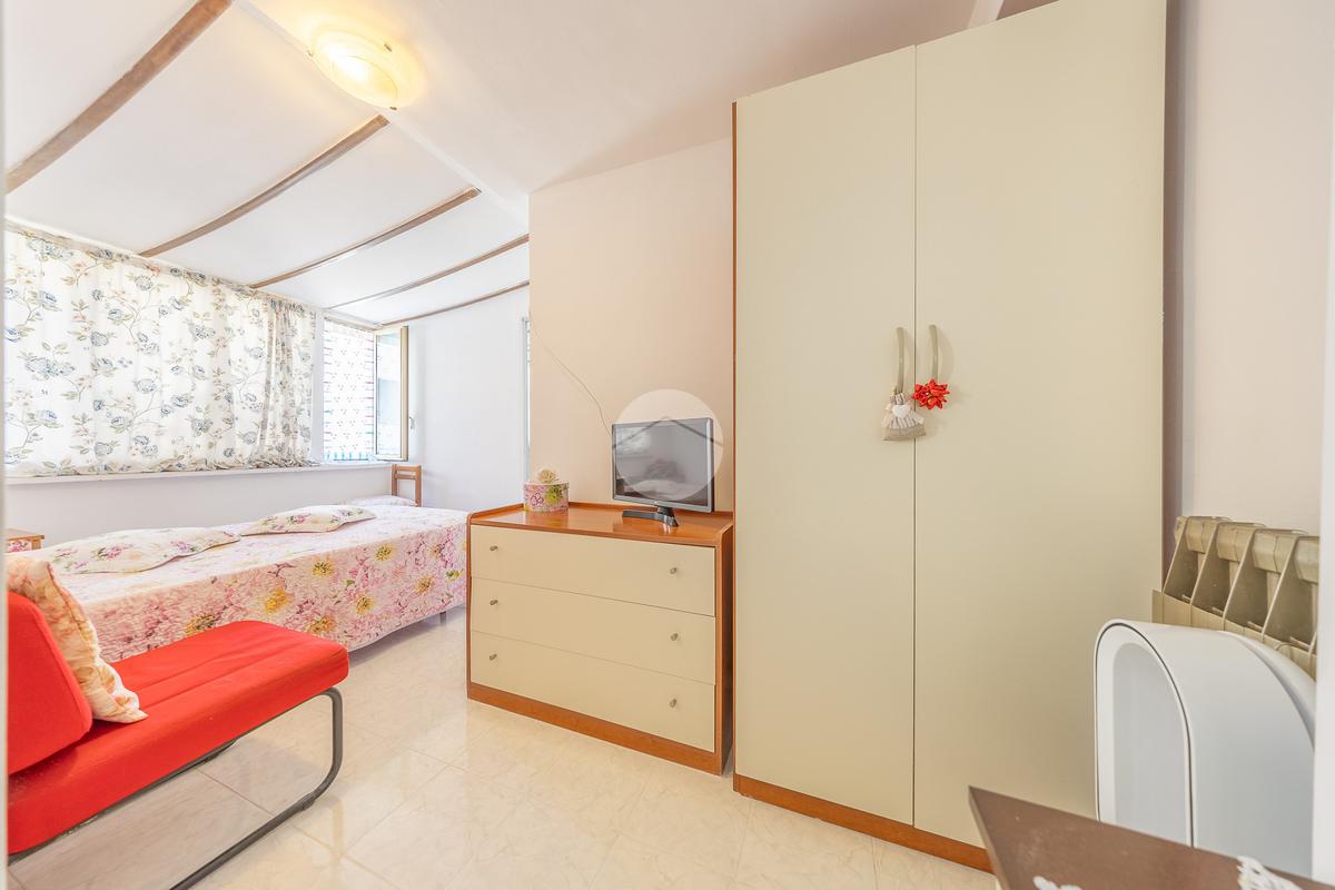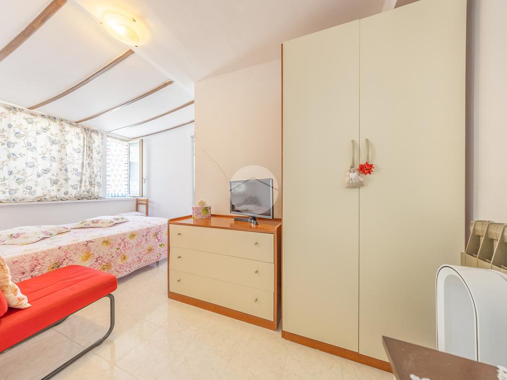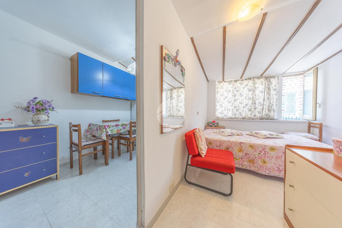 Attualmente la proprietà è organizzata in una prima unità composta da cucina, camera e bagno, e in una seconda unità più grande che dispone di un luminoso salone, cucina separata abitabile, due camere matrimoniali, bagno e due balconi.