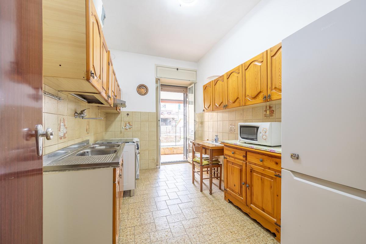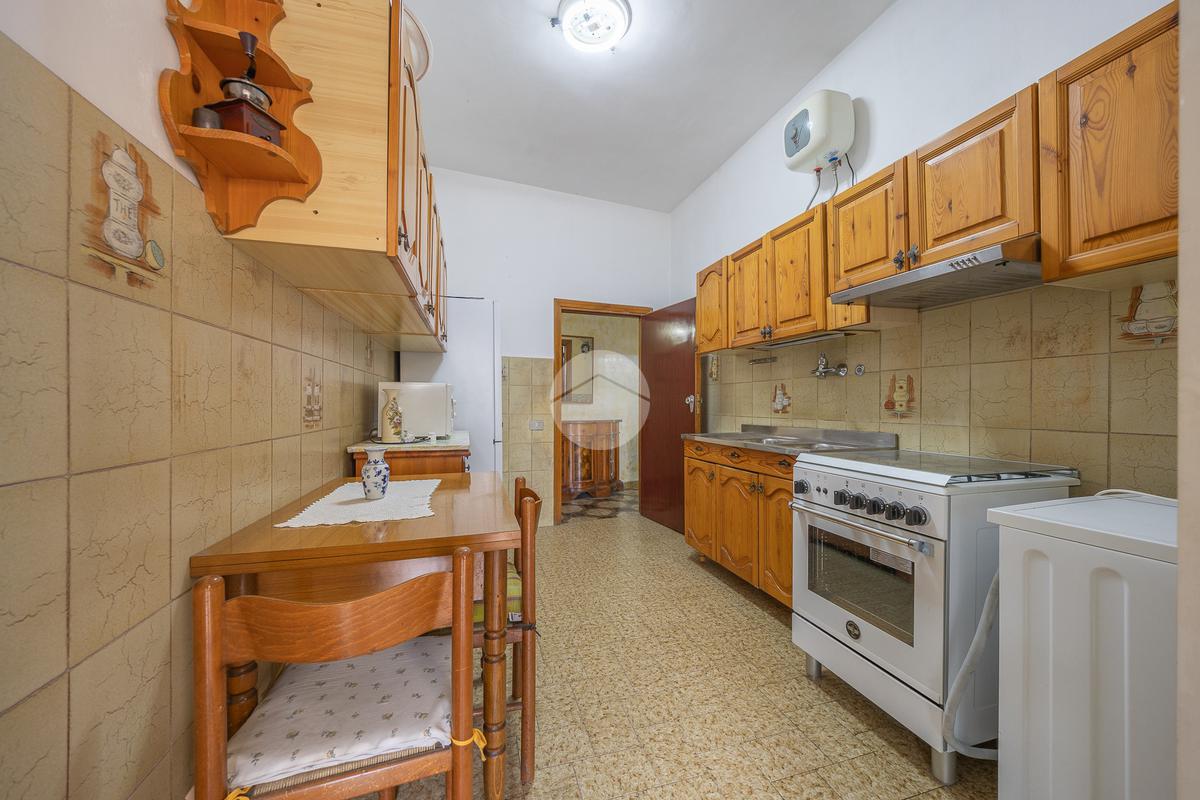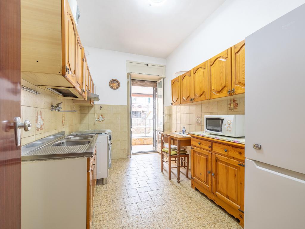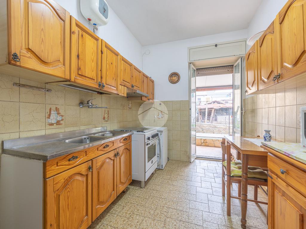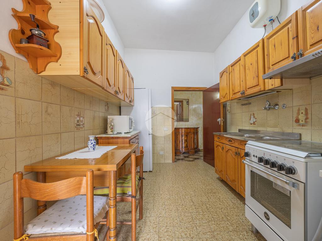 L'ingresso conduce ad un salone luminoso, con la cucina separata che offre praticità e una migliore gestione degli spazi con uscita sull'aerea esterna dal quale si accede alla cantina.